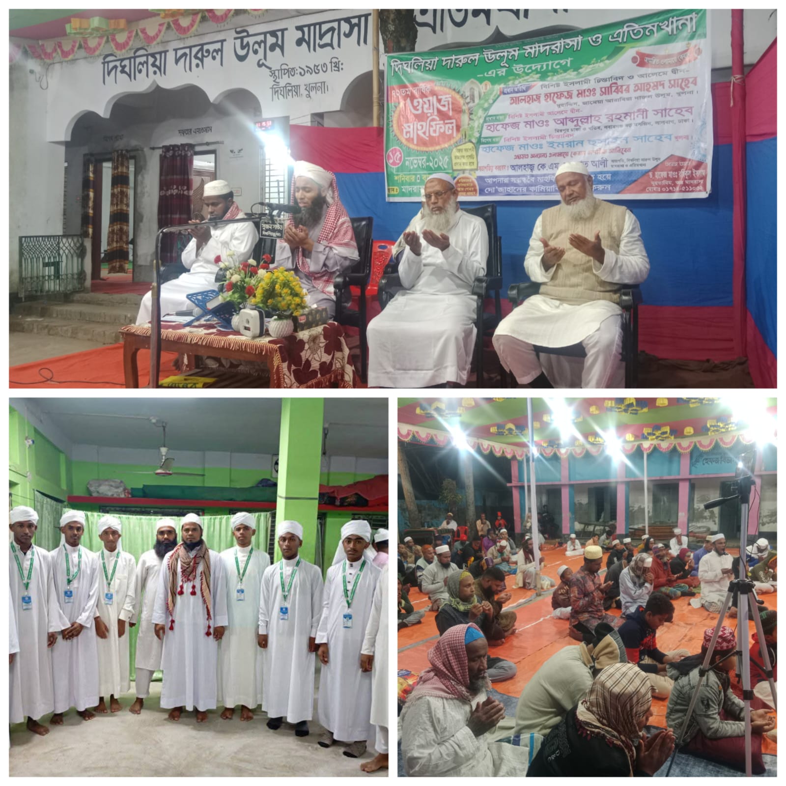 খুলনা দিঘলিয়া দারুল উলুম মাদ্রাসার ৭২তম বাৎসরিক ওয়াজ ও দোয়ার মাহফিল অনুষ্ঠিত হয়েছে। শনিবার (১৫ই নভেম্বর-২৫) সন্ধ্যায় মাদরাসা প্রাঙ্গণে এতে প্রধান অতিথি হিসেবে উপস্থিত ছিলেন আলহাজ্ব হাফেজ মাওলানা সাব্বির আহমেদ সাহেব। মুহাদ্দিন জামেয়া আরাবিয়া দারুল উলুম,খুলনা।