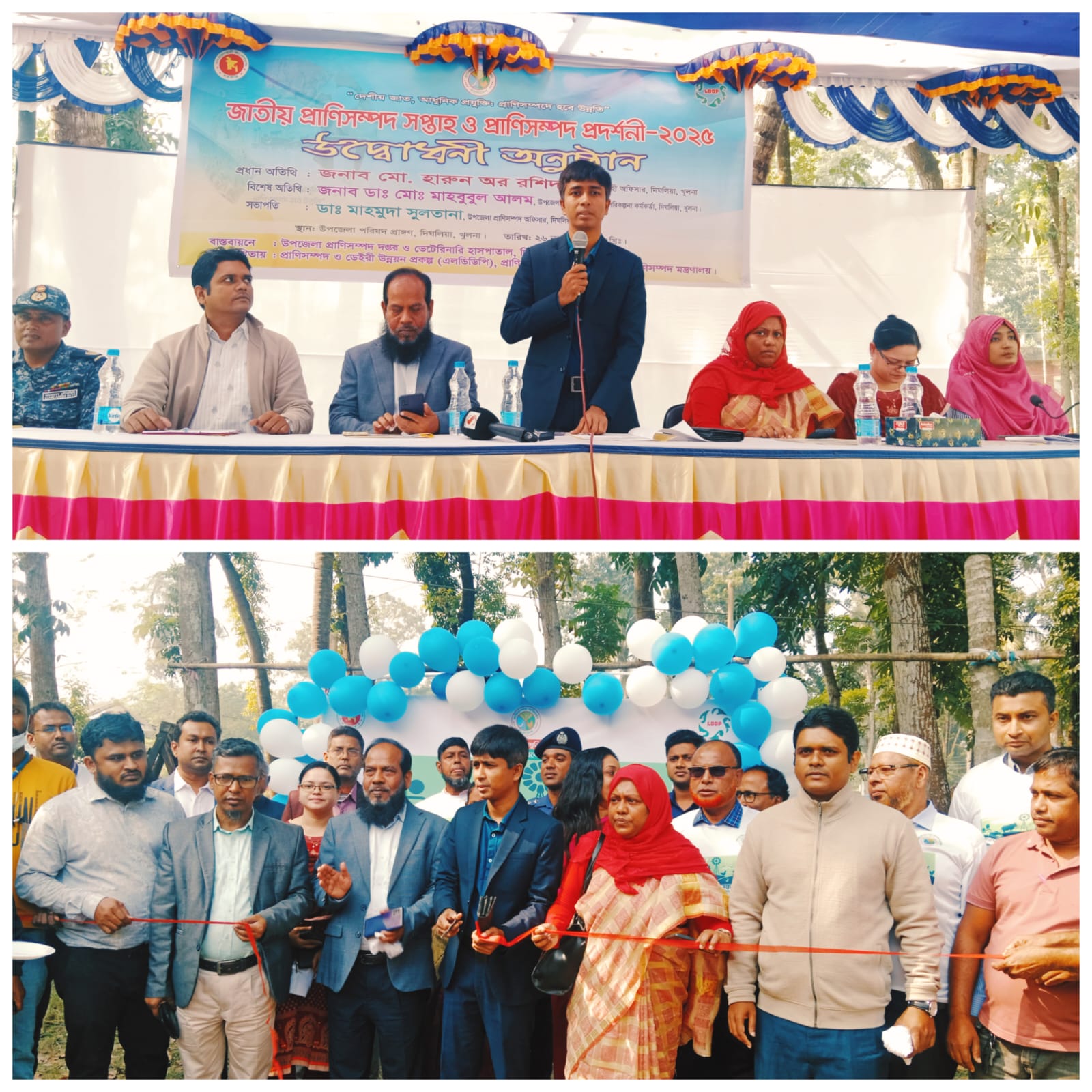 দিঘলিয়া উপজেলা প্রনিসম্পদ দপ্তর ও ভেটারিনারি হাসপাতালের আয়োজনে এবং প্রাণিসম্পদ উন্নয়ন প্রকল্প ও প্রাণিসম্পদ অধিদপ্তর, মৎস্য ও প্রাণিসম্পদ মন্ত্রণালয়ের সহযোগিতায় দিঘলিয়া উপজেলা পরিষদ মাঠে জাতীয় প্রাণিসম্পদ সপ্তাহ ও প্রাণিসম্পদ প্রদর্শনী-২০২৫ এর শুভ উদ্বোধন হয়েছে।